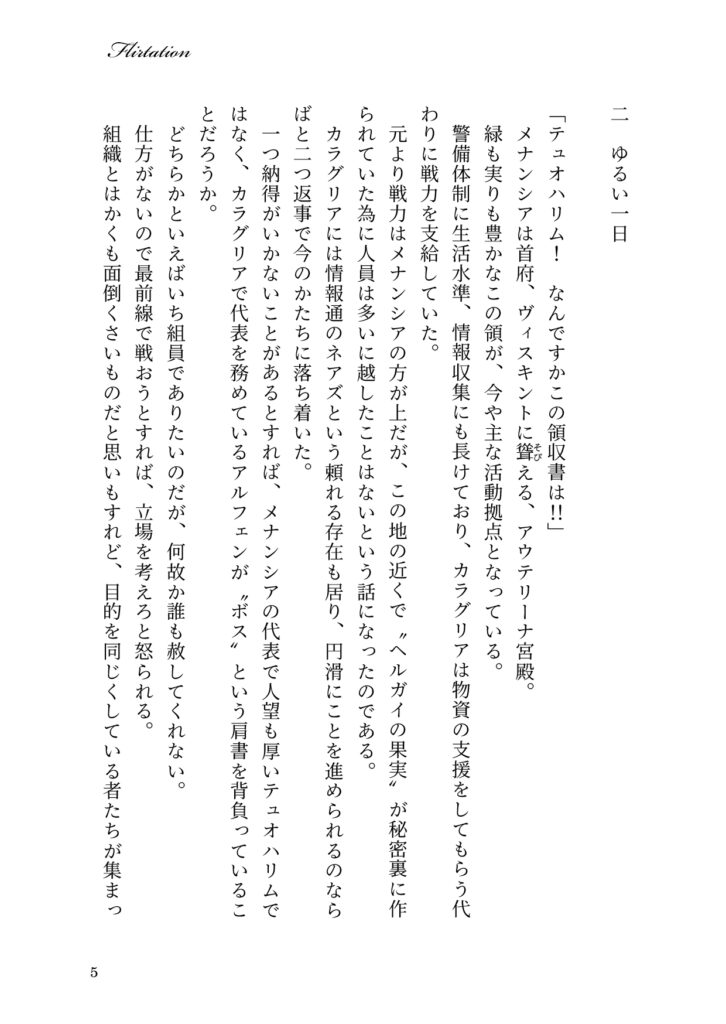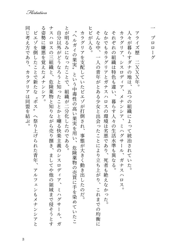 flirtation 2023/2/12開催 TOKYO FES Feb.2023[テイルズリンク23]で発行いたしました flirtation 表紙:デュークブラウン 155K本文:ナチュラル遊紙:前のみクラフト両更or半更おまかせ 印刷会社:HOPE21様