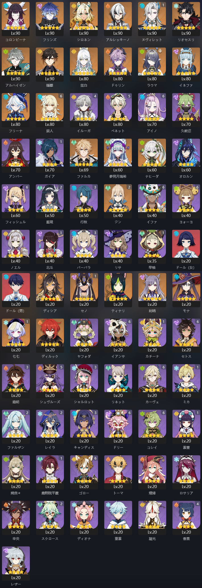 ▶所持キャラ一覧(メイン)